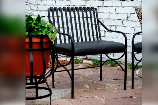 Кованое садовое кресло элемент украшения загородного участка. Такому креслу не страшны морозы, дожди и жара. Для удобства предусматриваются подушки, которые всегда можно занести в дом. Наиболее эффектно садовое кресло смотрится в гармонии с ансамблем из кованой мебели.
