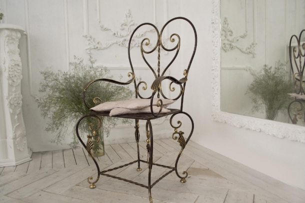 Кованое садовое кресло элемент украшения загородного участка. Такому креслу не страшны морозы, дожди и жара. Для удобства предусматриваются подушки, которые всегда можно занести в дом. Наиболее эффектно садовое кресло смотрится в гармонии с ансамблем из кованой мебели.
