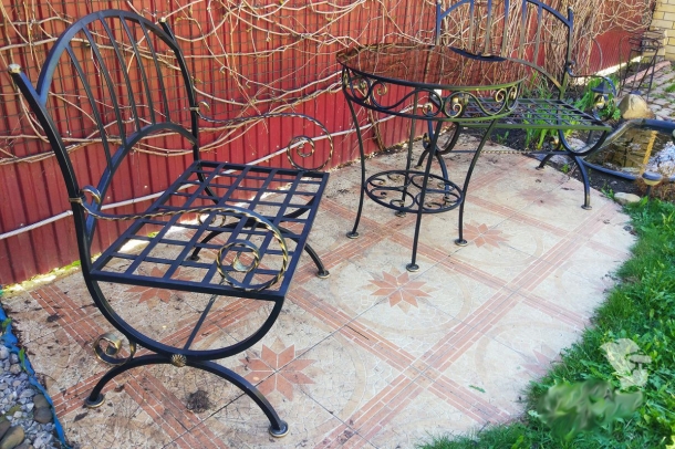 Кованый садовый стул изготавливается методом холодной и горячей ковки из настоящего кованого железа или с применением профильных труб, а также методом лазерной резки. Для изготовления применяются натуральные материалы высокого качества. Это позволяет создать долговечную конструкцию, которая прослужит десятки лет.
