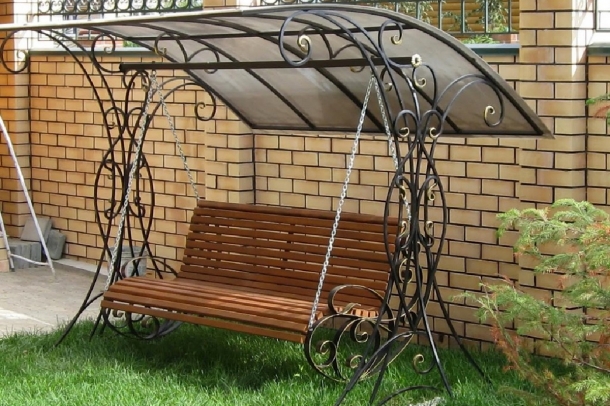 Одно из преимуществ кованых качелей – красивый внешний вид. Необычные узоры, плавно изгибающиеся орнаменты, кружева из металла никого не оставят равнодушным. Изделия выглядят очень дорого и подчеркивают отменный вкус владельца коттеджа.
