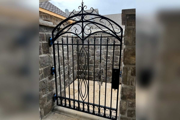 Художественная ковка, используемая для декорирования кованых калиток, отличается широким диапазоном выбора элементов. Владелец участка может заказать любой тип оформления: цветочный орнамент, растительные узоры, виноградная лоза, геометрические фигуры и так далее.
