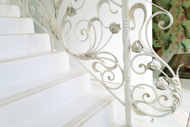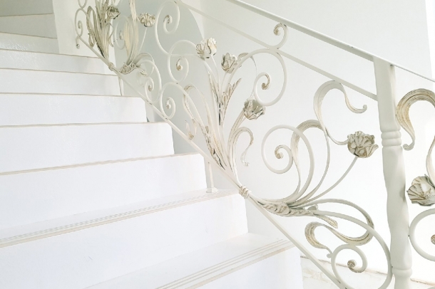 В коттеджах и загородных домах используется конструкция, которая обеспечивает безопасный подъем и спуск. В начале кованой лестницы располагается кованое приглашение. Это художественный элемент, обеспечивающий удобство передвижения. Также кованое приглашение лестницы является завершением рисунка, который нанесен на перила и саму лестницу. С помощью данного элемента можно реализовать задумку дизайнера, привнести изюминку в оформление кованых изделий.