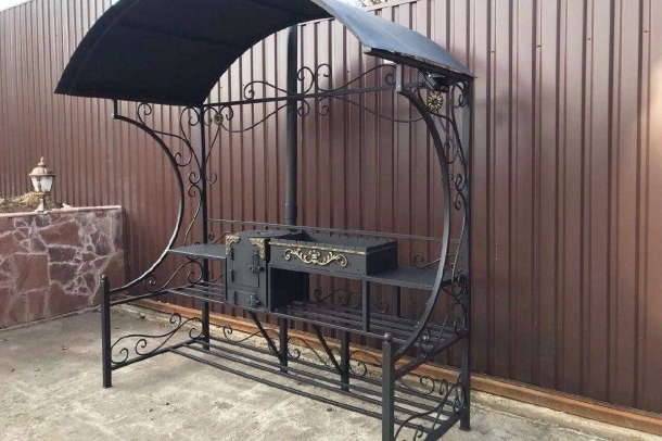 Кованый мангал под навесом из металла