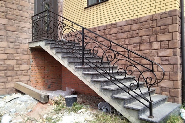 Кованое ограждение крыльца гармонично вписывается в экстерьер. Оно обеспечивает удобство и комфорт. Ограждение для крыльца делает площадку возле дома более привлекательной. Оно обеспечивает удобное использование полезной площади, а также придаёт экстерьеру оригинальности.