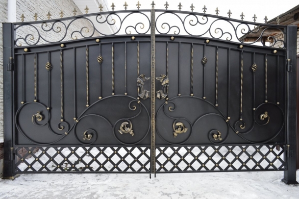 Кованые ворота пользуются большой популярностью среди владельцев частных домов. Для обеспечения безопасности собственного коттеджа и придания экстерьеру эстетичности применяются распашные кованые ворота. Они удобны в эксплуатации. При декорировании ворот используются элементы, хорошо сочетающиеся с различными материалами.