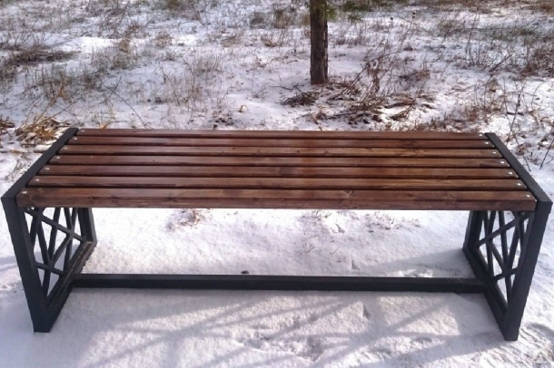 • Сидячее место скамейки: металл, дерево, мягкая обивка