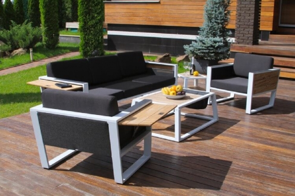 Отличительная черта данной мебели – сочетание практичности и лаконичности, ее выбирают те, кто в первую очередь ценят комфорт и долговечность. Выбирать нужно те вещи, которые действительно необходимы и удобны. Уличная мебель в стиле лофт должна играть на контрасте с внешней обстановкой. Если ваша дача выполнена в светлых оттенках или, например, стены обшиты деревом, то мебель стоит выбрать темную: серую, бордовую, темно-коричневую, черную.